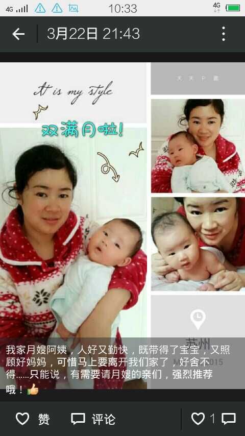 經過精心的調理,五日后奶量明顯上升 ,寶媽的氣色也明顯好轉。再談寶寶情況:3號接手當晚,小寶哭鬧不止,一直要抱著才能稍稍安靜。稍不如意就四肢揮舞,大哭,唇紺,根據經驗,考慮到一是抱習慣問題,二是不舒服和沒吃飽,在保證吃飽的前提下,我采取仿子宮狀包裹,希爾斯抱起放下法和寶寶周旋,一直持續到凌晨2點,寶寶才能躺在小床上獨自睡覺,此時的我已累的精疲力盡,一躺倒床上,瞬間便找不到北了。真的累壞了!