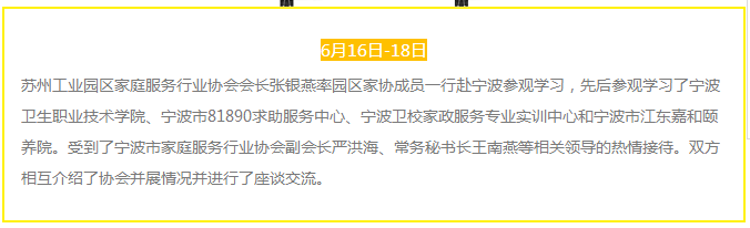 此次參觀學習不僅拓寬了我們的工作視野,而且學習借鑒到寧波優秀家庭服務企業管理與服務工作中好的經驗、好的方法,大家紛紛表示要進一步創新理念,加強服務,提升家庭服務業人員的技能水平,樹立園區乃至全市家庭服務行業的新形象!